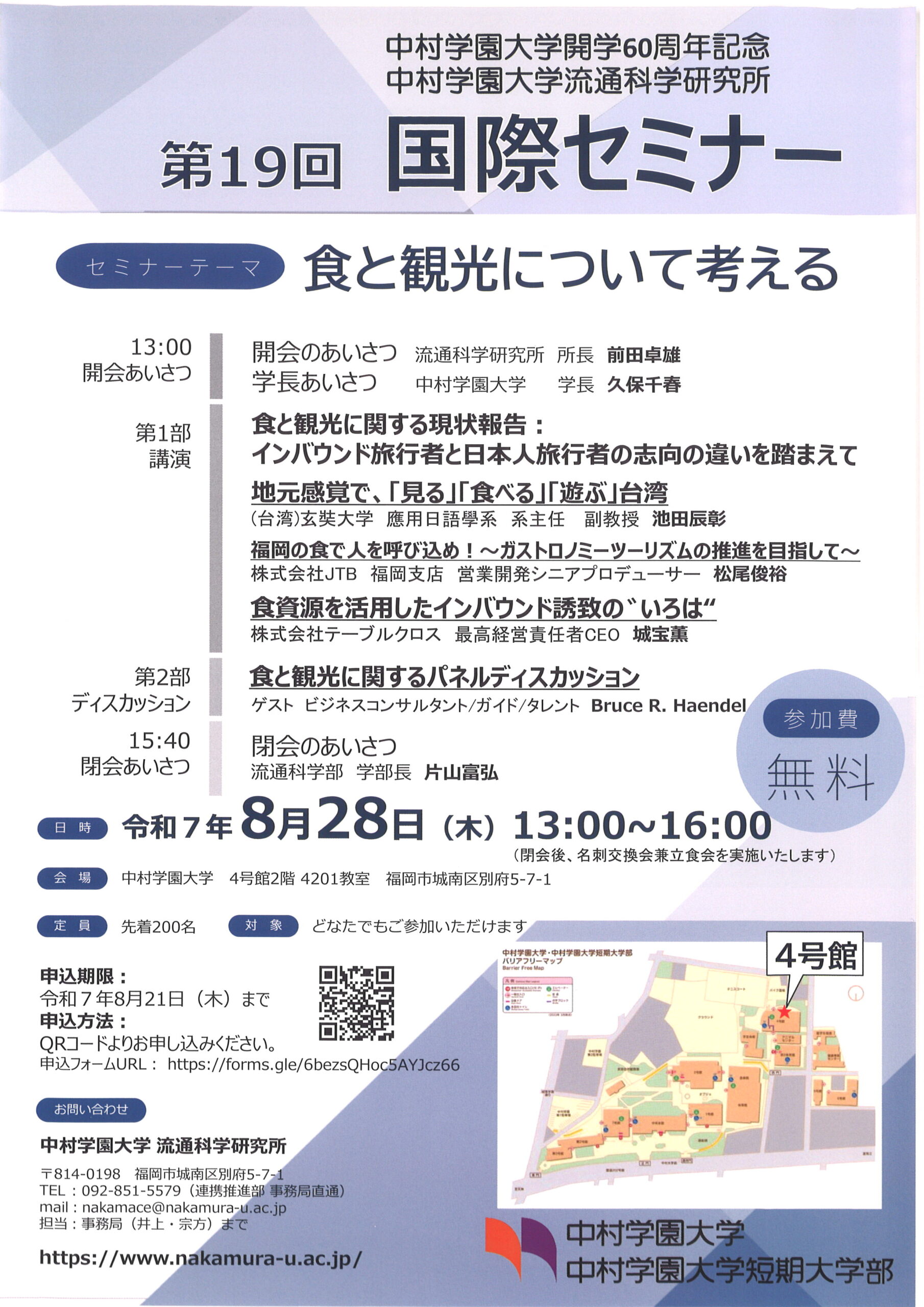4. 大学開学60周年記念「食と観光について考える」流通科学研究所国際セミナー開催のお知らせ